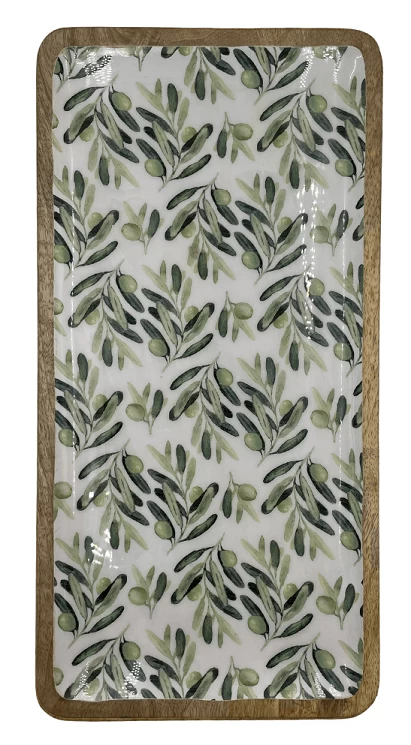Op zoek naar een stijlvol dienblad om (zomerse) gerechten of drankjes te serveren? Dit exemplaar van By Room is er één voor op uw wensenlijst! Het item is vervaardigd uit mangohout en heeft een vierkant design met een lengte van 46 cm en een breedte van 23 cm. De binnenkant is voorzien van een sticker met olive print voor een speels effect.