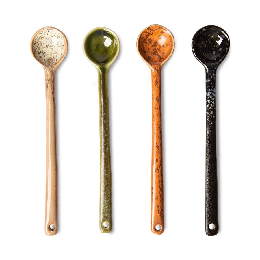 De HK Living 70’s lepels zijn gemaakt van geglazuurd aardewerk in meerdere vrolijke kleuren. De lepels L M zijn 16,5 cm lang en 3 cm breed. Het aardewerk is magnetronbestendig, hierdoor kunt u de lepeltjes in uw mok laten als het de magnetron in gaat.