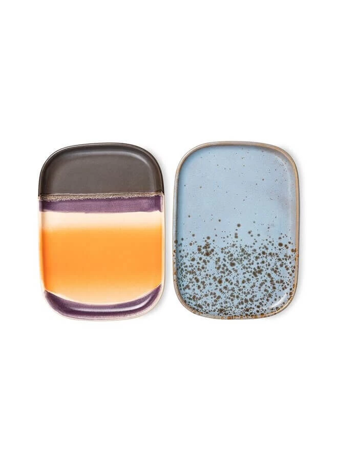 De 70’s Aries set van HK Living bestaat uit 2 serveerschaaltjes in de kleuren Berry en Jupiter. De plateautjes hebben een opstaande rand en hebben een lengte van 14,5 cm, een breedte van 10,5 cm en zijn 1,3 cm hoog. De bordjes zijn ideaal voor het serveren van kleine hapjes en passen bij de op de planeten geinspireerde servieslijn van HK living.Â