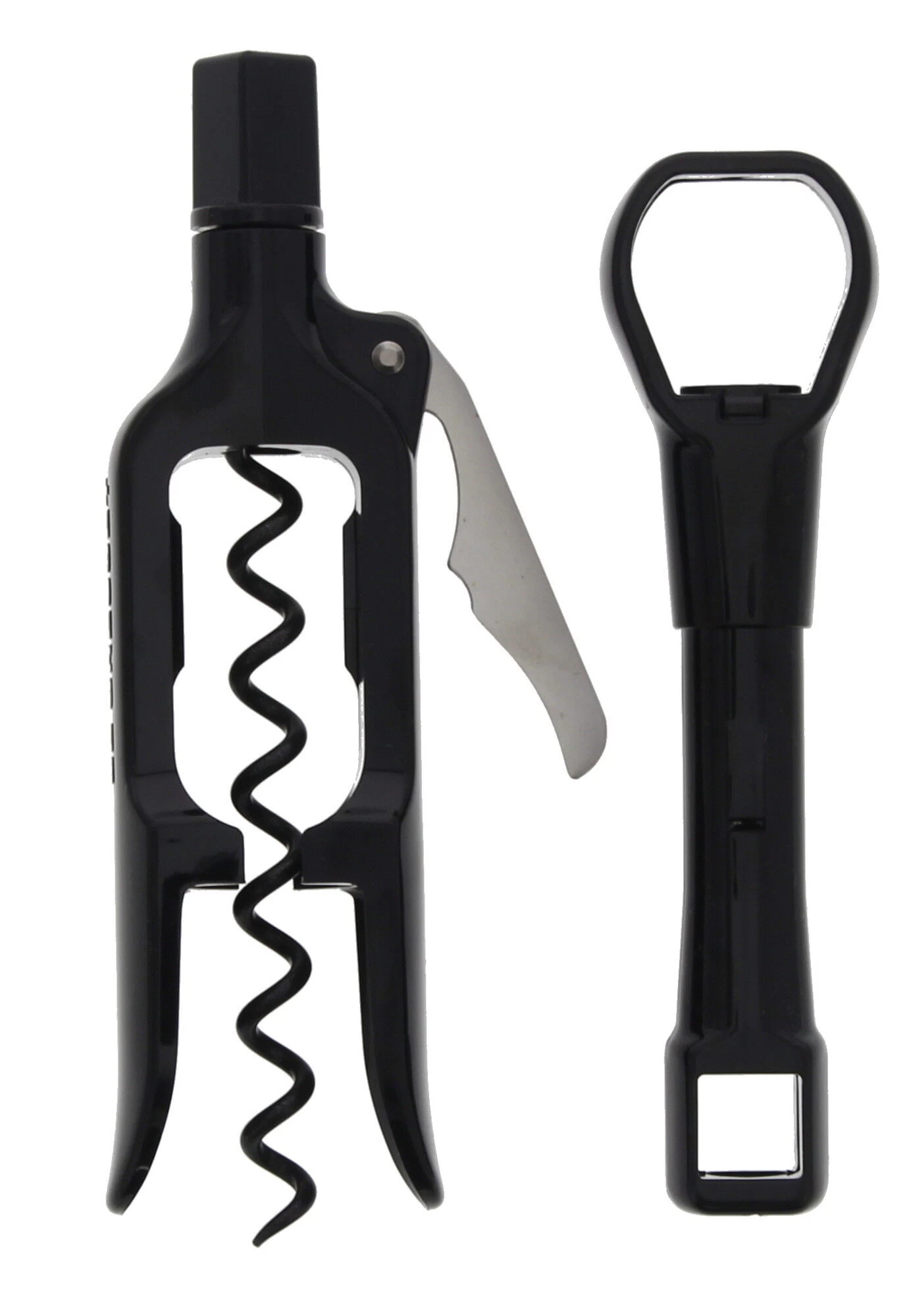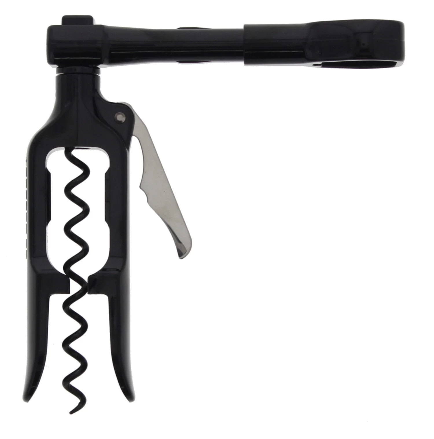 De zwarte Le Creuset PM-100 is perfect om mee te nemen naar het strand of tijdens een picknick. De opener bestaat uit twee delen welke eenvoudig aan elkaar te bevestigen zijn en een hefboom vormen. De armen van de opener vormen zich gemakkelijk aan aan de vorm van de hals, waardoor deze veilig en stabiel bevestigd worden. Dit maakt van de PM-100 een compacte, betrouwbare en veilige keuze. Wanneer de opener niet in gebruik is, is het losse gedeelte mee te dragen in de opener. Gebruik de Le Creuset PM-100 niet alleen voor het verwijderen van de kurk: de opener is tevens uitgerust met een inklapbare capsulesnijder en flesopener.