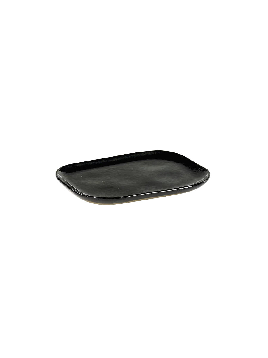 Het rechthoekige Merci bord van Serax is gemaakt van donkerblauw geglazuurd zandsteen. Het bord is 14,5 cm lang, 10,5 cm breed en 1,4 cm hoog.Â