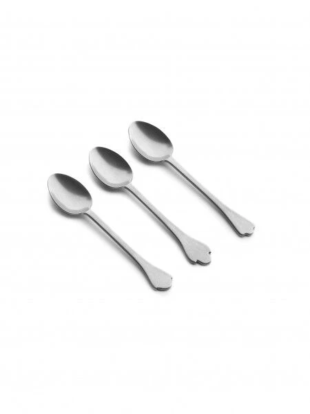 De Serax Merci Mix 4-5-6 koffielepels zijn gemaakt van roestvrij staal dat een stonewash-behandeling heeft gehad. Elk van de drie delen heeft een ander einde van de handgreep.Â