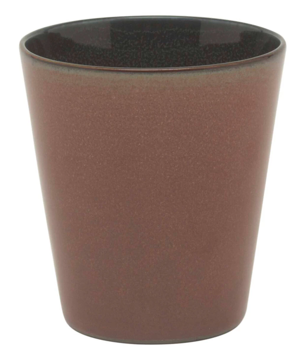 De conische Serax Terres de Rêves beker heeft een inhoud van 340 ml, is gemaakt van stoneware en is aan de binnenzijde geglazuurd met donkerblauw email en aan de buitenzijde met rust email. De beker heeft een diameter van 8,5 cm en is 9,5 cm hoog.